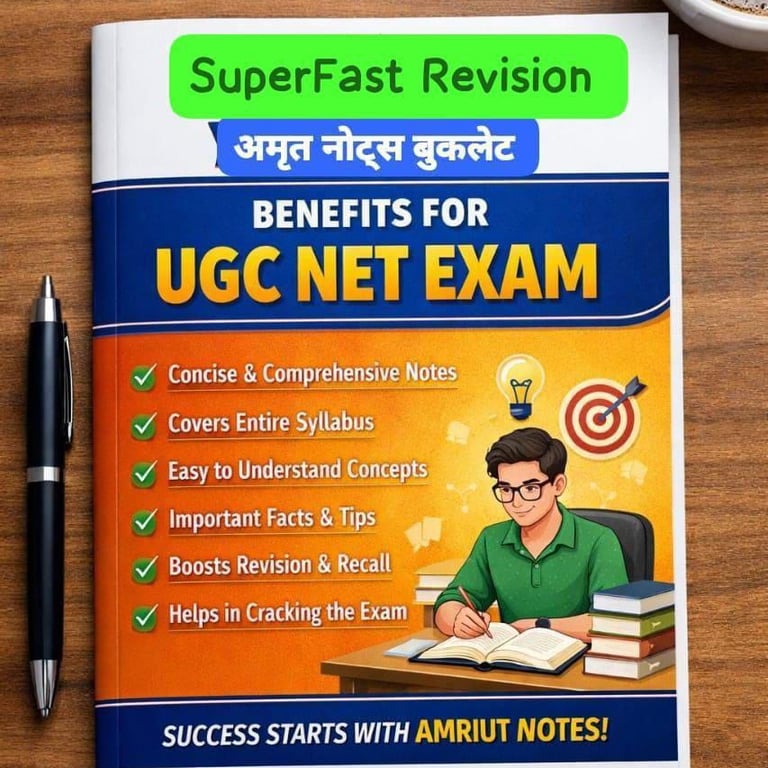 The Amrit Notes Booklet is a SuperFast Revision guide that contains all units covered in the UGC NET syllabus, presented in the form of crisp one-liners, key points, facts, and exam-oriented tips. It is created keeping in mind the last-minute revision needs of students who want maximum output in minimum time.Wri